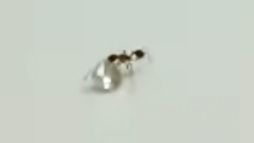Esta hormiga aferrada a la valiosa piedra preciosa, camina rápidamente por una mesa sin soltar ni un solo instante al pequeño diamante. Los trabajadores de un taller en Nueva York, en Estados Unidos. No pudieron abstenerse de grabar ese curioso momento.